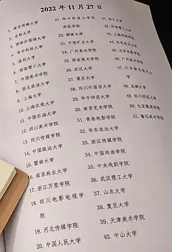 List circulated by Chinese students, including 51 universities, with anti-lockdown demonstrations as of 27 November[50]
