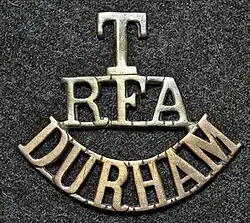 On the formation of the Territorial Force in 1908, the 3rd Durham RGA re-roled as Royal Field Artillery and provided the 4th Durham (Howitzer) Battery and 4th Northumbrian Ammunition Column of the 4th Northumbrian (County of Durham) Howitzer Brigade RFA (T).[2][5][6][4]