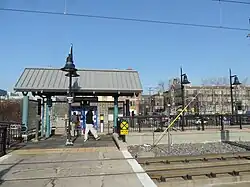 22nd Street station is a station on the Hudson–Bergen Light Rail (HBLR) in Bayonne, Hudson County, New Jersey. Located between East 22nd and East 21st Streets in Bayonne, the station is the second of four stops in the city. The station contains two tracks with a set of two side platforms, an outlier from the other stations of Bayonne, which all contain island platforms. 22nd Street serves two different services, the local line between 8th Street in Bayonne and Hoboken Terminal. It also serves the Bayonne Flyer, an express between the four Bayonne stops and Hoboken. The station is handicap accessible with elevators and platform levels that meet the Americans with Disabilities Act of 1990 standards. 22nd Street opened on November 15, 2003 as an extension from 34th Street, serving as the terminal until 8th Street opened on January 31, 2011.[2][3]