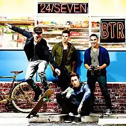 24/Seven is the third studio album by American boy band Big Time Rush, released on June 7, 2013, by Columbia Records. The album experiments with a dance-rock and R&B sound.[1] The band worked with producers Matt Squire and Damon Sharpe, as they had done in the past, in an effort to mature their sound yet not stray away from their prior qualities. The four members co-wrote 13 songs (including five deluxe edition bonus tracks) with several hired songwriters. It is the last album to be released by the band before going on a long term hiatus in 2014, until they reunited in 2021.