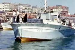 Built by the British Power Boat Company (BPB) at their yard in Hythe, Hampshire, originally eight 71 ft 6in (known to the Canadians as Type 'G' ) MTBs (459, 460, 461, 462, 463, 464, 465, 466) were assigned to the 29th MTB Flotilla, with three more boats (485, 486, 491) added later to replace damaged or sunken vessels.[6] Originally designed as Motor Gun Boats (MGBs), they were modified and re-designated as MTBs. Different boats received torpedo tubes at different times and several boats (such as MTB 460)were photographed whilst in service without torpedo tubes, although having the mounting rails fitted to their decks. These boats had to fight as MGBs until they received their torpedoes, although still carrying 'MTB' pennant numbers. (Driven by three Packard V-12 Supercharged 1250 H.P. engines, each with a 2,500 gallon capacity of 100 octane gas, these vessels had an operational radius of about 140 miles while cruising at 25 knots, and a top speed of some 40 knots. MTB 486 is the only known MTB of the 29th MTB Flotilla to survive into the 21st century as a civilian houseboat renamed Sungo.[6]