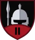 On 14 August 2023, the battalion changed its insignia design, being similar to the insignia of the 1st Infantry Battalion of the Legion. The new insignia changed drastically, with a shield in a red border containing a knights helmet and spear in the centre, with the upper tab being attached to the main shield with the inscription "Viribus Unitis" displayed once again. The commander of the battalion, Colonel Ruslan Myroshnychenko, stated in an interview that the insignia depicted a legionnaire warrior who consciously chose to fight for freedom, independence and justice.[7]