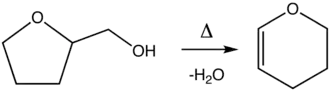Dihydropyran is prepared by the dehydration of tetrahydrofurfuryl alcohol over alumina at 300–400 °C.[2] THFA is itself prepared from tetrahydro-2-furoic acid.