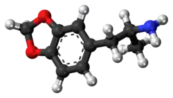 MDA was first synthesized by Carl Mannich and W. Jacobsohn in 1910.[58] It was first taken in July 1930 by Gordon Alles at a total dose of 126 mg, who experienced hallucinogenic effects, well-being and euphoria, and peripheral effects.[67][68][69] However, he did not subsequently describe these effects until 1959.[70][67][68] Alles later licensed the drug to Smith, Kline & French.[69] MDA was first used in animal tests in 1939, and human trials began in 1941 in the exploration of possible therapies for Parkinson's disease.[12] However, it was found to be detrimental in people with Parkinson's disease.[12] The drug was described as having analeptic (psychostimulant) effects in humans in 1953.[12] From 1949 to 1957, more than five hundred human subjects were given MDA in an investigation of its potential use as an antidepressant or appetite suppressant by Smith, Kline & French.[12]