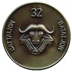 32 Battalion (sometimes nicknamed Buffalo Battalion, Three-two battalion or Portuguese: Os Terríveis for The Terrible Ones) was an elite light infantry battalion of the South African Army founded in 1975, composed of black and white commissioned and enlisted personnel. It was disbanded on 26 March 1993.[1]: 280