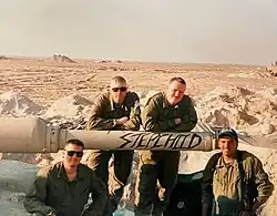 Between November 1990 and January 1991, 4th Tank Battalion was mobilized in support of Operation Desert Shield and Operation Desert Storm. Elements of the battalion were "in country" and combat ready within 32 days of activation. During the fighting, Bravo Company engaged Iraqi tanks in combat on February 25, reporting 34 enemy tanks destroyed or disabled in less than 90 seconds.[3] This battle was named the “Reveille Engagement” and went on to be the biggest and fastest tank battle in United States Marine Corps history. They were the only Marine unit equipped with M1A1 Abrams tanks.[4] Bravo company went on to destroy 59 tanks, 32 APCs, 26 non armored vehicles, and an artillery gun.[5] Bravo Company destroyed a total of 119 enemy vehicles and took over 800 POWs.[4] Tank crew “Stepchild” has the longest confirmed live kill (Iraqi BMP) by a tank at 3,750 meters (2.33miles).[4]