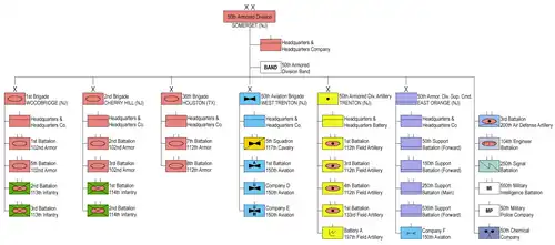 At the end of the Cold War the division was a unit of the New Jersey Army National Guard, with a round-out brigade from the Texas Army National Guard. The division was organized according to the Army of Excellence table of organization and equipment: