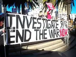 Supporters of the 9/11 Truth movement at an anti-war demonstration in Los Angeles, October 2007