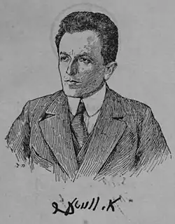 A few months after returning to Vilnius in late 1918, he was murdered by Polish nationalists who took him for a Bolshevik (although living in Bolsehvik controlled Vilnius for a few months prior, he was no more a Bolshevik than their leader Jozef Pilsudski; his murder exemplifies the Polish pogroms occurring throughout the early Second Polish Republic: see Morgenthau Report ).[12] At the time of his death he was sketching a drama on the subject of Jewish-Polish-Lithuanian relations and planning a sojourn to his homeland, the Benyakoni District.[13] His death became a symbol for the Yiddishist movement and he was honored as one its primary leaders by a grave monument and a tribute book[14] including encomiums by Moshe Kulbak, Alter Kacyzne, S. An-sky, Zusman Segalovitsh, Samuel Leib Zitron, Mendel Elkin[15], Michael Weichert[16], Hersh Dovid Nomberg, Shmuel Niger, Zalman Reisen, and Dan-Pinkhes Kaplanovitsh[17]