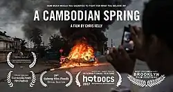 A Cambodian Spring is a 2016 British documentary film directed and produced by Christopher Kelly, focusing on a conflict over plans to develop the Boeung Kak lake in the Cambodian capital of Phnom Penh. The film premiered under the title The Cause of Progress at the 2016 Sheffield DocFest.[2] It also showed at the Hot Docs festival in Toronto, Canada in May 2017.[3] It was released theatrically in the United Kingdom and Ireland on 18 May 2018.