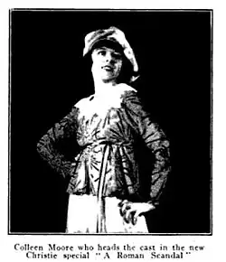 A magazine ad featuring Colleen Moore as a new actress for Christie Film Co. starring in the film A Roman Scandal. | |