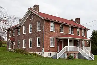 Abel Colley Tavern is a historic home that also served as an inn and tavern located at Menallen Township, Fayette County, Pennsylvania. It was built about 1835, and is a 2+1⁄2-story, 5-bay, brick dwelling with a 2+1⁄2-story rear kitchen ell. It sits on a sandstone foundation and is in the Greek Revival style. It was built as a stop for 19th-century travelers on the National Road.[2]