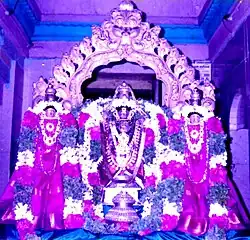 Abhimana Kshethram or Abhimana Sthalam (Devanagari: अभिमान क्षेत्रम् /अभिमान स्थलम्) are a list of 108 sacred Vishnu and Lakshmi temples apart from the other 108 Divya desams. Abhimana desams or close abodes, these temples are the most significant temples in the Vaishnavite tradition which has similar greatness as Divya Desams. These set of temples is classified as an Abhimana Kshethram as it is mentioned in Various Puranas and Ithihasas such as Ramayana and Mahabharata and have Significant Sthala Puranas based on the Ithihasas and Various Puranas of Hinduism . The temples are also said to be visited by many Religious scholars and saints such as Ramanuja, Adi Shankara, Madhvacharya, Nathamuni, Yamunacharya, Vedanta Desika, Manavala Mamunigal, Purandara Dasa, Narayana Teertha, Chaitanya Mahaprabhu and by many other great Vedic teachers and Rishis. Some of these Temples are said to be visited by the Alvars who did not sing the god's grace due to various reasons.[1] Out of these 108 temples Rajagopalaswamy Temple, Mannargudi is considered as the 1st out of the 108 Abhimana Kshethras as Thirumangai Alvar is believed to have visited the temple and is believed to have built the tall flag post outside the temple with the help of cotton bales. The other Alvars who are believed to have visited the temple at various periods were seemingly lost in under the beauty of the presiding deity and were at a loss for words.[1]