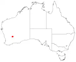 This species is known from populations near the type location in the Coolgardie and Mallee bioregions of south-western Western Australia, where it grows in well-drained rocky soil in mallee shrubland with low scrub.[6]