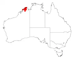 This species of wattle is native to an area of the Kimberley region of Western Australia, its range extending from around Cape Londonderry in the north down to around the Carson Escarpment, in the south in the Northern Kimberley bioregion of Western Australia. It usually grows in lateritic based or sandstone based soils in open woodland communities.[4][5]