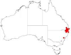 This species of Acacia grows in forest and heath north from the Glen Innes district.[8] Subspecies brunioides is common on rocky outcrops in the Gibraltar Range and Washpool National Parks, on and near the McPherson Range and near the Tooloom and Urbenville areas.[7][8] Subspecies granitica is restricted to higher altitudes near Stanthorpe and Wallangarra.[9][10]