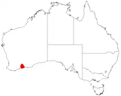 It is native to an area along the south coast of the Goldfields-Esperance region of Western Australia where it is commonly situated along river banks and in rocky areas growing in loamy or clay-loam soils.[1] The plant has a limited range but is common in the area it is found around the Jerdacuttup River to the east of the town of Ravensthorpe where it is commonly a part of mallee Eucalyptus communities but also forms dense stands.[2]