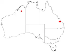 A. pedleyi occurs in the understorey of open woodland and woodland communities along with Acacia crassa, Corymbia citriodora, Eucalyptus moluccana and Eucalyptus populnea. It is often situated on alluvial flats, hillslopes and ridges.[3] The bulk of the population is located from around the Calliope Range to the Callide Range in the Port Curtis District in the Rockhampton Region of Central Queensland. Other much smaller populations are found near Biloela and around the Degalgil State Forest.[1]