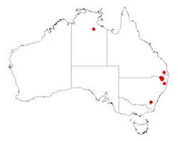 It is endemic to the north eastern corner of New South Wales in the Bolivia Range in the northern tablelands on the border with Queensland where it is found on granite slopes amongst boulders growing in sandy soil as a part of dry heath and Eucalyptus and Callitris woodland communities.[2]