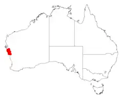 It is native to an area in the Mid West region of Western Australia where it is often situated on low rises and sandplains growing in sandy or sandy-loam soils.[1] The range of the plant extends from around Geraldton in the south to about 50 km (31 mi) north of the Murchison River where it is usually a part of mixed open scrub, tall shrubland or open heathland communities.[2]