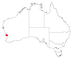 It is native to a small area in the Wheatbelt region of Western Australia,[2] all found in a single population to the north west of Dandaragan growing gravelly loam soils among laterite breakaways as a part of low Eucalyptus woodland communities.[3]