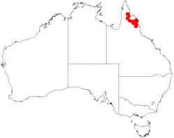 It is native to an area of Far North Queensland where it is commonly situated in granitic sandy beds of seasonally dry creeks or other watercourses which tend to regularly be inundated by floodwaters.[1]