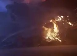 The colossal staging of a crashed Boeing 727 airplane in December 1991 involved creating a complete location set in Piru, California.[7] The derelict fuselage was blown up over a bridge and a recreated river and river bed. After the failure of the first explosion, a second rigged explosive realistically recreated the crash scene in which the plane is torn apart.[5]