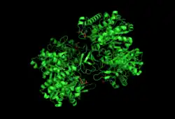 ![]() Crystallographic structure of the tetrameric acetoacetyl-CoA thiolase (EC:2.3.1.9) from the Gram-negative bacterium Z. ramigera.[1] | |||||||||