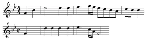Of the music of the final section, Kinderman remarks, "Most striking of all is the musical intensification of the last stanza in the Allegro molto. In the piano, he compresses the melodic outline from the beginning of the song, with its upbeat from F leading to repeated Ds and then the dominant seventh supporting E.[13] The "compression" pointed out by Kinderman is illustrated in the following figure and sound files.