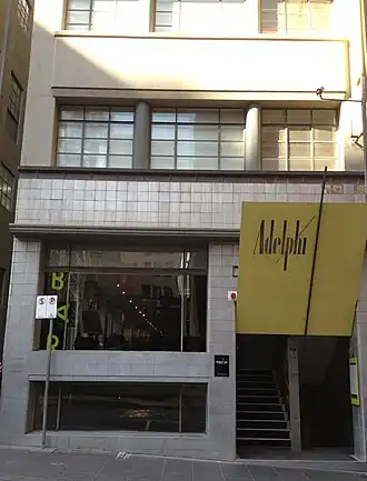 The Adelphi Hotel is located in Melbourne, Australia. It began as a warehouse that was purchased and renovated by Denton Corker Marshall (DCM) architects in 1989, and officially opened for business in 1992