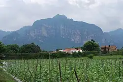 The territory of Mexico roughly corresponds with that of Mesoamerica, which was one of the cradles of plant domestication.[2][3] Archeological research in the Gulf coast of Tabasco shows the earliest evidence of corn cultivation in Mexico. The first fields were along the Grijalva River delta with fossilized pollen evidence showing forest clearing around 5100 BCE. The domestication of corn is followed by sunflower seeds and cotton.[3]