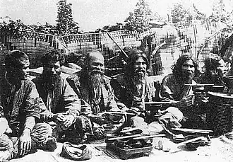 The Ainu have historically suffered from economic and social discrimination, as both the Japanese government and mainstream population regarded them as dirty and primitive barbarians.[59] The majority of Ainu were forced to be petty laborers during the Meiji Restoration, which saw the introduction of Hokkaido into the Japanese Empire and the privatization of traditional Ainu lands.[60] During the 19th and 20th centuries, the Japanese government denied the rights of the Ainu to their traditional cultural practices, such as hunting, gathering, and speaking their native language.[61]