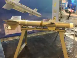 Akhgar missile (Persian: موشک اخگر) is an Iranian drone-launched air-to-ground missile operated by the Islamic Republic of Iran Air Force.[1] This Unmanned aerial vehicle weapon, which is among the newest missiles of Iranian drones, has a range of 30 km,[2] its weight is twenty seven kg and its maximum speed is 600 kilometers per hour.[3][4]