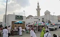 Al-Ji'rana was mentioned by the 8th-century Arab historian al-Waqidi. In his Kitab al-Tarikh wa al-Maghazi (Arabic: كتاب التاريخ والمغازي, "Book of History and Campaigns") Al-Waqidi describes two ancient sanctuaries in al-Ji'rana visited by Muhammad on his journey on dhu al-qa'da of the eighth year after the Hijrah: al-masjid al-aqṣā ("the farthest mosque") and al-masjid al-adnā ("the closest mosque").[2][3] This was also mentioned by al-Azraqi, a 9th century Islamic commentator and historian.[3]