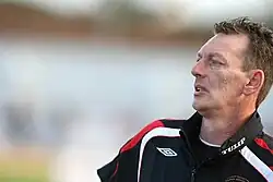 McDonald played 52 times for Northern Ireland, including the 1986 World Cup in Mexico, and worked as an assistant manager at Swindon Town and Northern Ireland national team.[5] He played a significant role in the 0-0 draw against England at Wembley in November 1985 which saw Northern Ireland qualify for the 1986 World Cup,[6] giving a post-match interview rebutting suggestions that the match had been 'fixed'[7] which was remembered for many years after.[8]