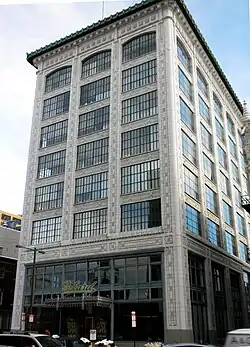 Kahn left Mason and Rice in 1895, entering into a partnership with Alexander B. Trowbridge and George W. Nettleton known as Nettleton, Kahn & Trowbridge.[10] In 1902, Kahn formed a partnership with his brother Julius, a civil engineer. Later that year, Julius developed a novel and scientific method of reinforcing concrete with steel, making reinforced concrete construction practical and economical. After receiving a patent on the "Kahn System" of construction in 1903, Julius left Kahn's firm and established the Trussed Concrete Steel Company, or Truscon, to market the product. Reinforced concrete allowed for much larger open spaces within factory interiors not obtainable with conventional wood construction and at a lower cost than steel frame construction. Concrete had other beneficial characteristics, such as far better protection from fire and greater load-bearing capacity. By 1905, hundreds of buildings within the United States were being constructed using the Kahn System, including the first reinforced concrete automobile plant, completed for the Cadillac Motor Car Company at 450 Amsterdam Street in TechTown, Detroit.[11] Julius Kahn collaborated with his brother on the design of many industrial projects throughout the US constructed with reinforced concrete, particularly automobile factories, with the result that Kahn became widely known for his expertise in the construction of concrete industrial structures.[12]