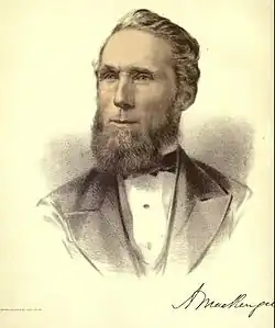 Mackenzie was born in Logierait, Perthshire, Scotland. He left school at the age of 13, following his father's death, to help his widowed mother, and trained as a stonemason. Mackenzie immigrated to the Province of Canada when he was 19, settling in what became Ontario. His masonry business prospered, allowing him to pursue other interests – such as the editorship of a pro-Reformist newspaper called the Lambton Shield.[2] Mackenzie was elected to the Legislative Assembly of the Province of Canada in 1862, as a supporter of George Brown.