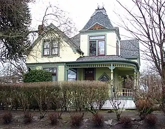 The Alfred J. and Georgia A. Armstrong House is a historic house in Portland, Oregon, United States. A modest but elaborate Queen Anne house built in 1894, it is one of very few intact examples of its type remaining from the early years of development in the King neighborhood. Likely constructed by one of its original occupants, a skilled carpenter, it exhibits more defining Queen Anne characteristics than other nearby houses of the same period, including a tower and the large quantity of jigsawed ornamentation.[1] It was entered on the National Register of Historic Places in 2002.[2]