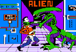 In Alien, the player controls a crew of seven people who are on a spaceship with an alien that is running loose. The object of the game is to capture or kill the alien. The crew can employ stun guns or lethal weapons to try to neutralise the alien. As a last resort, the player can use a self-destruct mechanism in the ship and the remaining crew can flee in an escape pod.