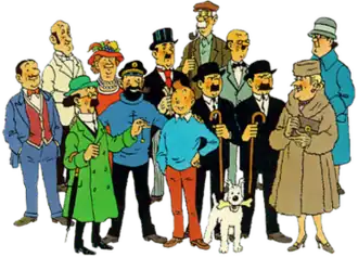 The supporting characters Hergé created for his series have been described as far more developed than the central character, each imbued with a strength of character and depth of personality that has been compared with that of the characters of Charles Dickens.[1] Hergé used the supporting characters to create a realistic world[2] in which to set his protagonists' adventures. To further the realism and continuity, characters recur throughout the series.
