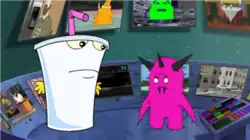 Allen says that the monitors track all bad deeds around the entire world, and when spotted the perpetrators are electrocuted, so that the Earth can remain good. Allen then explains to Shake that he is the meanest person on the planet, and that he is going to electrocute him. But Shake responds that he has on a "forcefield"; Allen believes this, and refrains from killing him. Frylock and Meatwad then go right next to the room where Allen and Shake are located and Meatwad tells Frylock a plan he has. Allen tells Shake that he has an abusive father, who forced him to do the job he is doing, after Allen and his friend Tommy have a party and Tommy ruined his father's pool table. Shake then tells Allen that he knows his father, and that his father is going out of town on business. Allen sees this as the perfect opportunity to party with his friend Tommy, and tells Shake to do his job. Meatwad's plan starts, with him saying tiny swears such as "doody" and "butt", while Frylock goes all out and says things like "suck my fry dick". Allen blasts and kills Frylock and gives Shake his powers and goes up out of the room, leaving Shake in charge. But before he can go up to the party room, it catches fire because Tommy was smoking, and Allen argues with his father. Shake then flicks a button which puts a shield on the tower, and Allen's father electrocutes and kills him for "his own good".