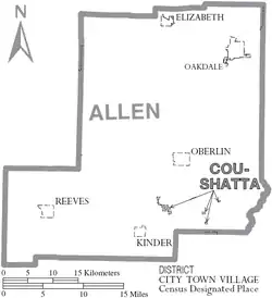 Allen Parish (French: Paroisse d'Allen) is a parish located in the U.S. state of Louisiana. As of the 2020 census, the population was 22,750.[1] The parish seat is Oberlin and the largest city is Oakdale.[2] Allen Parish is in southwestern Louisiana, southwest of Alexandria.