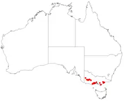 This casuarina is found heath or open woodland in sandy soil, often near the coast in isolated and scattered populations across Victoria.[2][5]