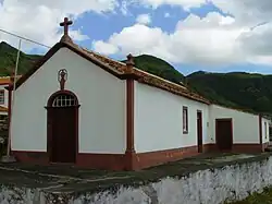- Hermitage of Nossa Senhora dos Remédios (Portuguese: Ermida de Nossa Senhora dos Remédios/Ermida de Santo Amaro), dedicated to Our Lady of Medicine, the chapel is located in southern coastal place of Praia Formosa, alongside the Ribeira da Praia, it is a simple rectangular temple with small sacristy, a decorative archway door (inscribed with the words "1868/S AMARO", when it was then known as the Chapel of São Amaro) and constructed masrony brickwork later painted white.[20] Along with the sacristy, the single nave chapel has a well-preserved pulpit of wood, with elements designed in the Baroque style (principally spiral rosettas).[20][21]