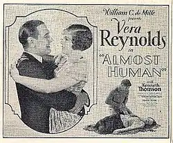 Almost Human is a 1927 American silent drama film directed by Frank Urson, starring Vera Reynolds and Kenneth Thomson, produced by Cecil B. DeMille and William C. de Mille, and distributed through Pathé Exchange. The picture was based upon a novel by Richard Harding Davis entitled The Bar Sinister.[1]