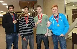 Hambleton was accepted into both Queen's University's Commerce program and the University of Western Ontario's Ivey School of Business.[14] Electing to go to Western, he became president of the UWO Chess Club during his second year.[12][15] During this year, Hambleton organized and competed in the 2012 Canadian University Chess Championship which took place at Western University. He placed second in the tournament, helping Western to the championship along with teammates Shiyam Thavandiran (1st-place), Raja Panjwani (6th-place), and Justin McDonald (13th-place).[12][15][16]