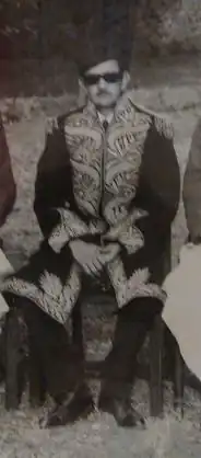 In this picture seated (left to right): Sahibzada Mohammad Khurshid (first Pakistani Governor of Khyber-Pakhtunkhwa province of Pakistan), Nawabzada Liaquat Ali Khan (Liāqat Alī Khān) (Urdu: لیاقت علی خان) listen (help·info) (2 October 1896 – 16 October 1951) the first Prime Minister of Pakistan, Nawab Sir Muhammad Farid Khan Tanoli (Nawab of Amb) and Begum Ra'ana Liaquat Ali Khan (wife of Liaquat Ali Khan. Darband, Amb State, 1949.