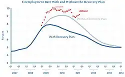 - ^ Council of Economic Advisers, "The Economic Impact of the American Recovery and Reinvestment Act of 2009" Archived May 23, 2017, at the Wayback Machine, July 14, 2010, p. 4.