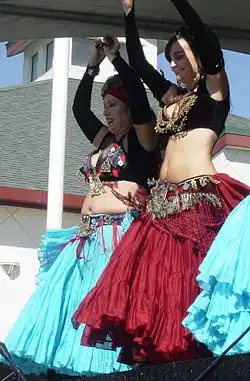 American Tribal Style Belly Dance or Tribal Style Belly Dance (also known as ATS or Tribal) is a modern style of bellydance created by FatChanceBellyDance director, Carolena Nericcio.[1] American Tribal Style Belly Dance is clearly defined and documented with the primary characteristic being that of group improvisation. Tribal is generally performed in a group, often at community events such as festivals and parades, with tribal dancers typically favoring a look provided by wide-legged pants gathered at the ankles (aka pantaloons), tops known as cholis and full skirts.[2]