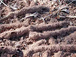 | Dry twigs covered with soil by feeding activities of encrusting termites, Gnathamitermis perplexus in the Sonoran Desert, Arizona | |